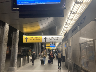 列车来了,挤满了乘客。这是我见过最拥挤的纽约地铁了,没想到是在最后一程遇见了。人很多,他说“快挤,待会儿挤不上了”。我和他握了握手,抓着行李箱就上了地铁。列车开动时,我看到他从窗户外给我打招呼,我也向他告别。