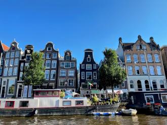 We also enjoyed a boat tour around the intricate network of canals in the city. This is what I was referring to previously when I mentioned that Amsterdam reminds me of Venice due to its numerous canals. Unlike Venice, which lacks roads to an extreme degree, Amsterdam has roads, but the canals are far more convenient and plentiful. Our boat guide was quite humorous, and I learned many interesting facts about Amsterdam. For instance, the buildings in the city are very narrow because property taxes are based on width, so residents build their homes tall and narrow to minimize taxation. Furthermore, houses often lean forward because they were historically used to store spices that Amsterdam imported from the VOC from India, which were later shipped worldwide. The forward tilt of the houses made it easier to hoist cargo to the upper levels with a rope, due to the narrowness of each floor.