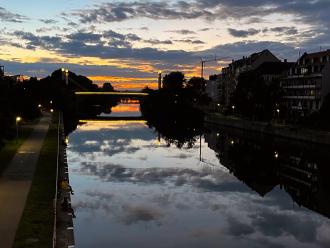 The town was brimming with life. We observed people casually holding beers as they stood on the bustling streets. Despite the crowd, the cultural richness was intriguing, giving me the feeling of experiencing Germany firsthand. A free live concert was underway, contributing to the high-spirited ambiance. We explored the town, from the central cathedral to the riverside, where we were treated to stunning sunset views and their reflections in the river. We sat by the lake, the view leaving us speechless.