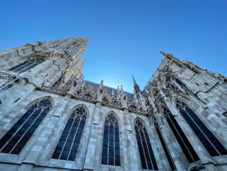 Indeed, it was another cathedral, equally beautiful but on a much larger scale than the previous one. We explored the exterior, which in my opinion, tends to be similar in every cathedral. However, we had the opportunity to take an elevator to the top tower. The panoramic views of the entire city of Vienna from the top were truly breathtaking.