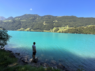 Before coming here, I was unaware that this place is called Lungern. We hadn’t planned on stopping, but the sight of the absolutely stunning lake compelled me to pull over, just like many others. The light sapphire blue of the lake was breathtaking. I found myself questioning how this was possible, continually rubbing my eyes in disbelief. Everything appeared so real, the color was surely that of heaven.