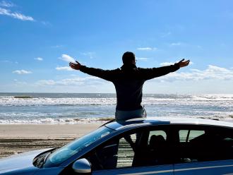 The view, of course, was impeccable. I had never seen such a lively seashore and beach right through my driver’s seat window. The sound of the waves, the sunshine reflecting off the sea surface, and the car’s somewhat out-of-control maneuvers all combined to create an exhilarating experience. I couldn’t help but pull over and sit on the roof of the car, overlooking the Atlantic Ocean. It was absolutely breathtaking.
